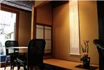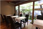 お茶の製造・販売を手掛ける「丸久小山園(まるきゅうこやまえん)」の製品が購入できるショップと、実際にお茶やお菓子を楽しめる喫茶スペースを併設。丸山小山園は、元禄年間(1688-1704)、宇治茶で名高い宇治小倉の里でお茶の栽培と製造を手がけて以来、代々に渡り宇治茶の伝統と品質改善に努め、独自の研究を行ってきた。その「品質本位の茶づくり」は、全国ならびに関西茶品評会第一位を31回受賞、独自の特許を取得するなど、数々の賞や栄誉から「品質の丸久小山園」と親しまれている。店内では、抹茶をはじめ、玉露、煎茶、玄米茶などのお茶、抹茶を使用したお菓子を販売。茶房では、お抹茶、煎茶、ほうじ茶などと和菓子のセット、アイスクリーム、ロールケーキ、ぜんざいなどを楽しむことができる。店内に本格的な二畳の茶室を備え、空いていれば茶室でいただくことも可能。(茶道の点前はありません。)定番メニューをはじめ、季節ごとに変わる和菓子や器も楽しく、ゆったりと庭を眺めながら、くつろぎの時間を過ごすことができる。