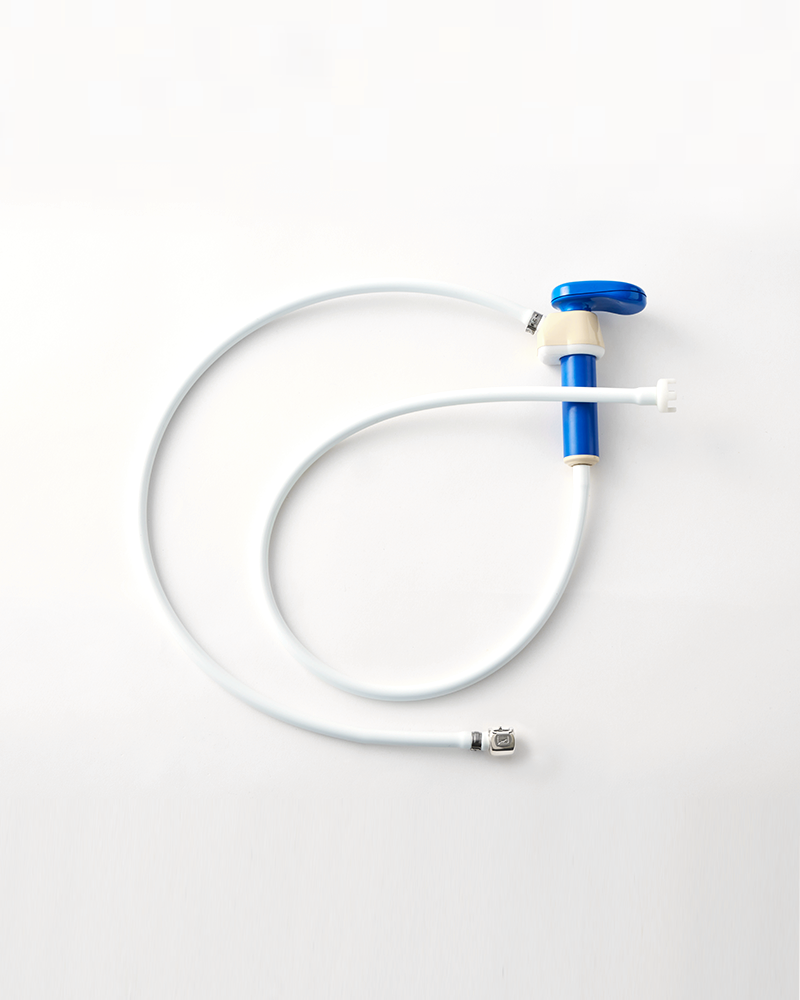 ホースの片側を、取水するバケツや川へ浸し、もう片側をアダプターでシーガルフォーに接続できる「ハンドポンプ」。