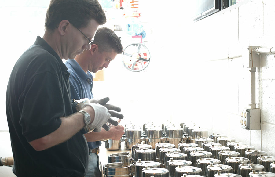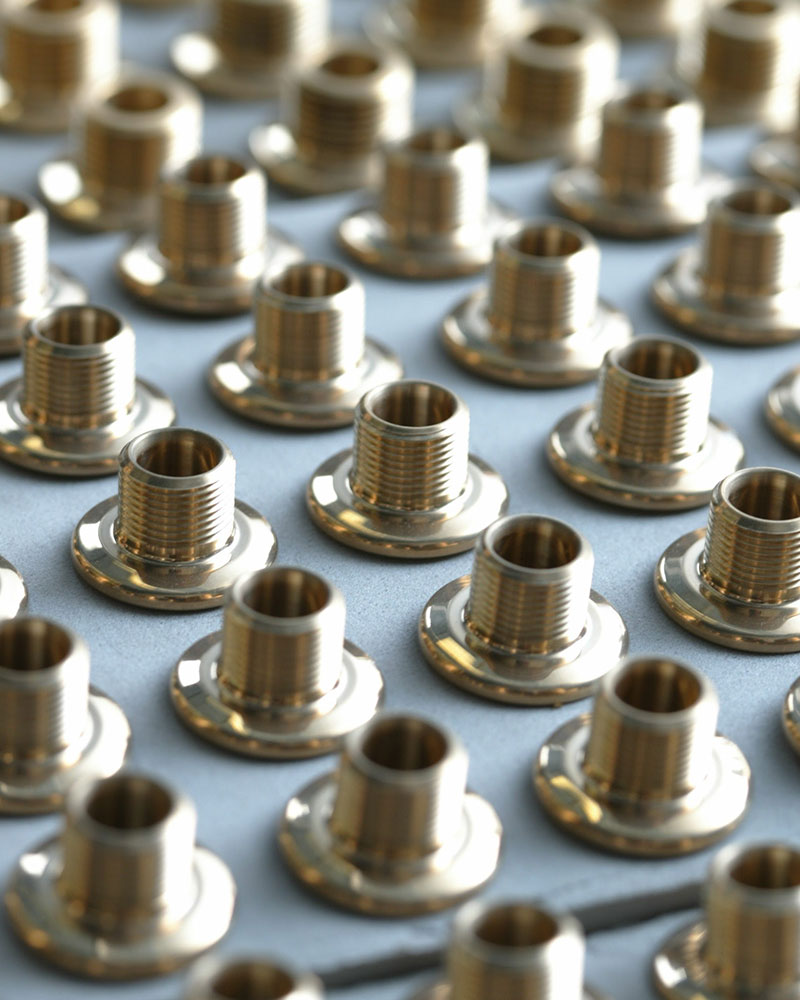 (写真)樹脂製パーツを成型するための金型まで自社生産。写真は、浄水カートリッジのエンドキャップ用の金型。(写真)パーツは、ネジ1本まで自社生産。コンピュータ数値制御(CNC)とクラフトマンシップの融合が徹底されている。